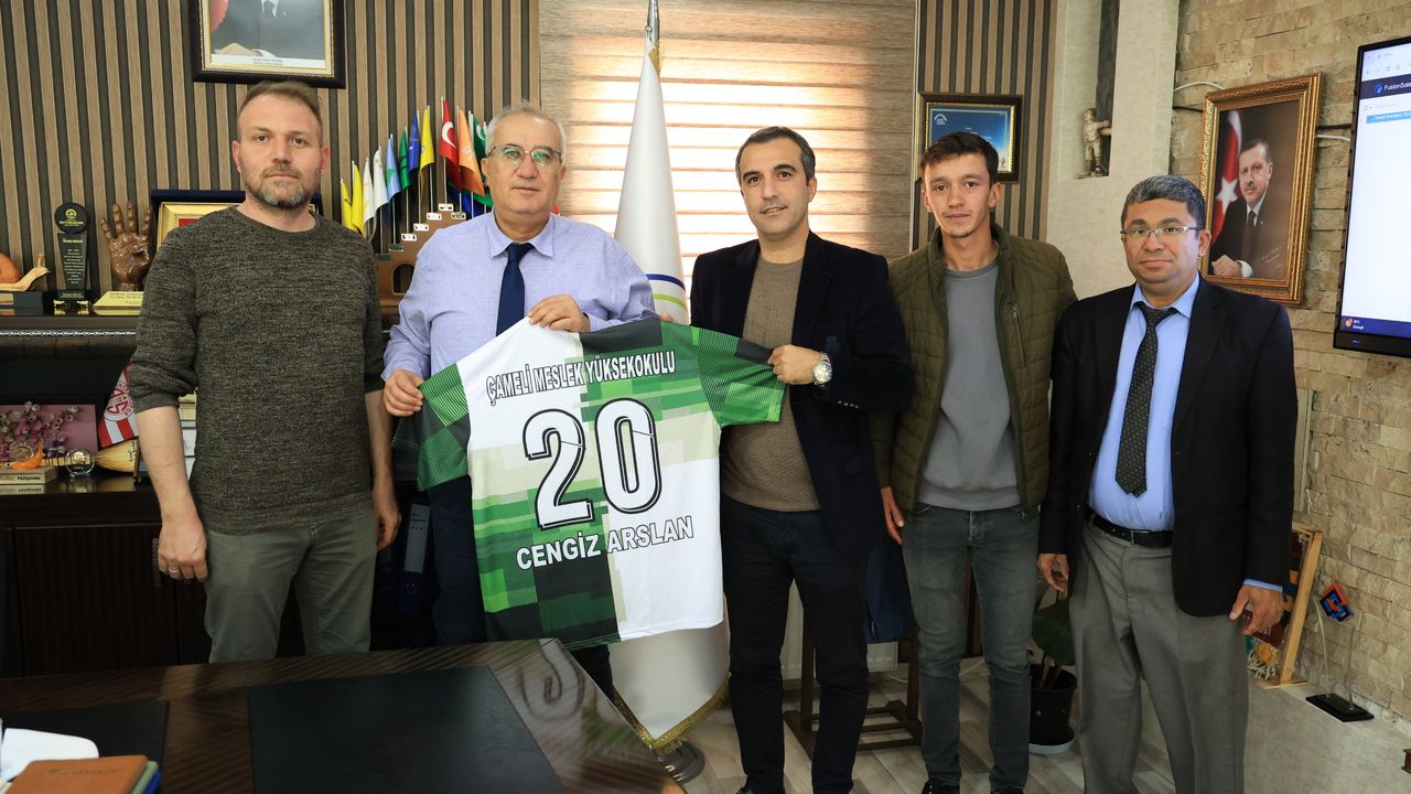Ziyarette, Meslek Yüksekokulu Müdürü Dr. Öğretim Üyesi Recep Çakır ve takım temsilcileri turnuva öncesinde Başkan Arslan’a destekleri için teşekkür etti ve takım formasını takdim etti.