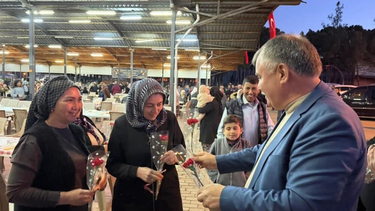 Eşi Gülseren Pütün ile birlikte kadınlara karanfil hediye eden Başkan Pütün, 8 Mart Dünya Kadınlar Günlerini kutladı.Gönül sofrasını bu Ramazan ayında da kurabildikleri için ailecek mutlu olduklarını belirten Beyağaç Belediye Başkanı Sezayi Pütün, "Ramazan ayının bereketini ve kardeşliğin sıcaklığını hemşehrilerimizle aynı sofrada paylaşmanın mutluluğunu yaşadık.