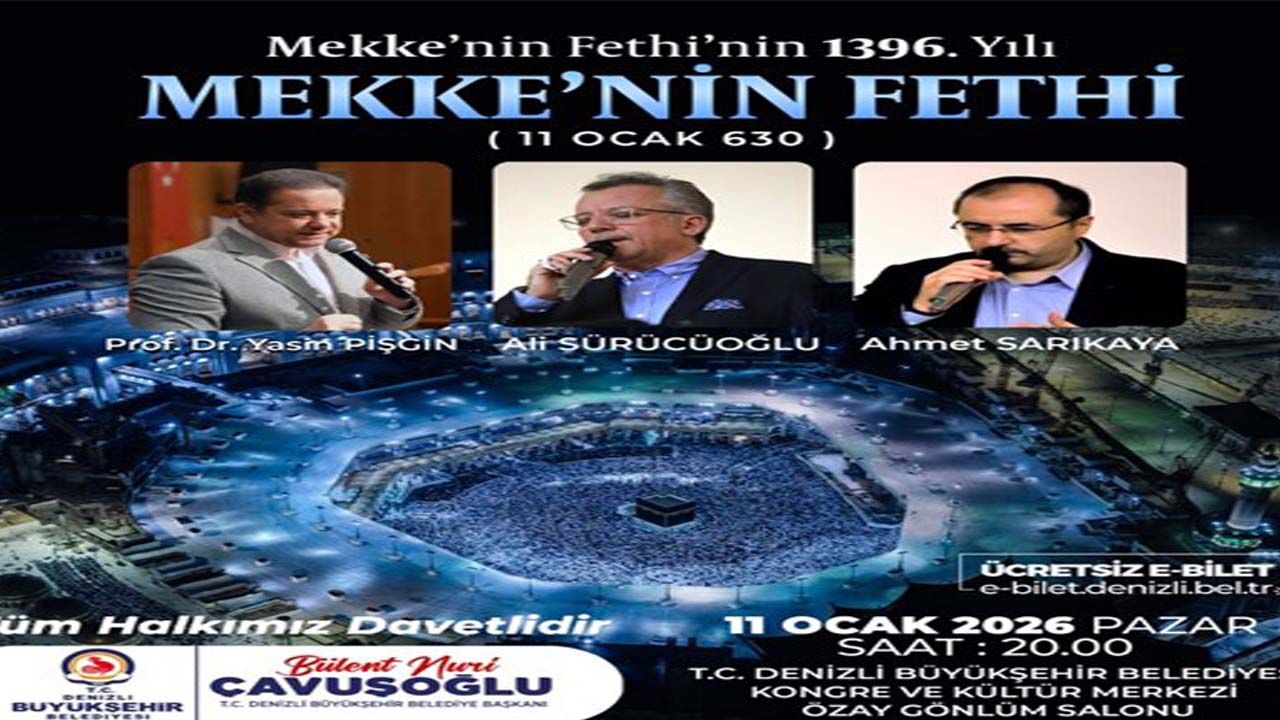 Kültür ve sanat şehri Denizli vizyonuyla takdir toplayan Denizli Büyükşehir Belediyesi tarafından Mekke’nin Fethi’nin 1396. yıl dönümünü nedeniyle 11 Ocak 2026 Pazar günü düzenlenecek olan program, birbirinden değerli konukları ağırlayacak.