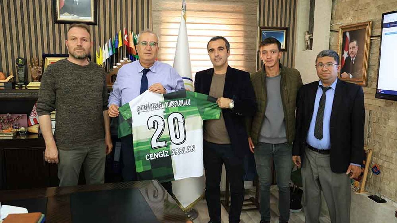 Pamukkale Üniversitesi tarafından düzenlenen Personel Futbol Turnuvası öncesinde, Çameli Meslek Yüksekokulu futbol takımı, Çameli Belediye Başkanı Cengiz Arslan’ı ziyaret etti. Ziyarette, Meslek Yüksekokulu Müdürü Dr. Öğretim Üyesi Recep Çakır ve takım temsilcileri turnuva öncesinde Başkan Arslan’a destekleri için teşekkür etti ve takım formasını takdim etti.