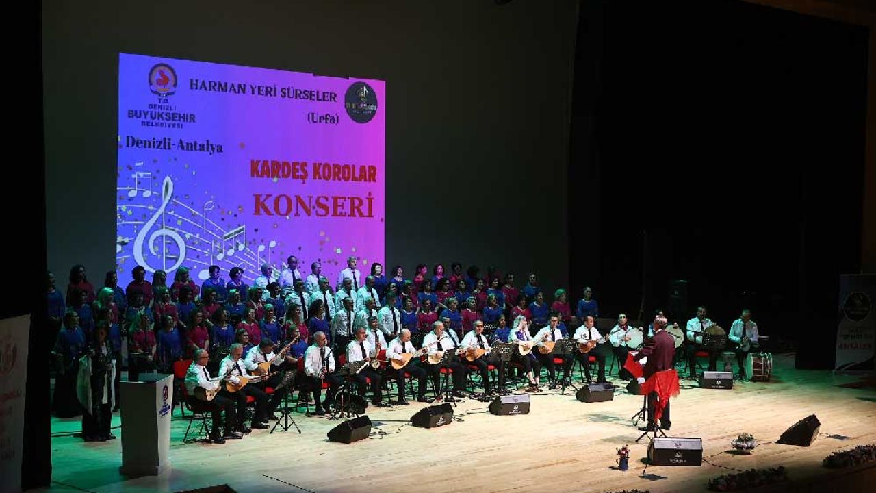 İki farklı şehrin seslerini buluşturan bu özel konserde, Denizli Anadolu Türk Halk Müziği Topluluğu ile Antalya Nurettin Dabağoğlu Sanat Topluluğu birlikte sahne aldı. Anadolu’nun dört bir yanından ezgilerin yankılandığı bu özel konser, Türk Halk Müziği’nin zenginliğini ve kültürlerin kardeşliğini ön plana çıkararak müzikseverlere unutulmaz bir akşam yaşattı. Geceye katılanlar, şarkılara hep birlikte eşlik ederken, sanatçıların ve saz üstatlarının performansı salonda uzun süre alkış aldı. Solo ve koro eserlerin seslendirildiği gece, 90 kişilik koronun birlikte söylediği potpuri ile sona erdi.